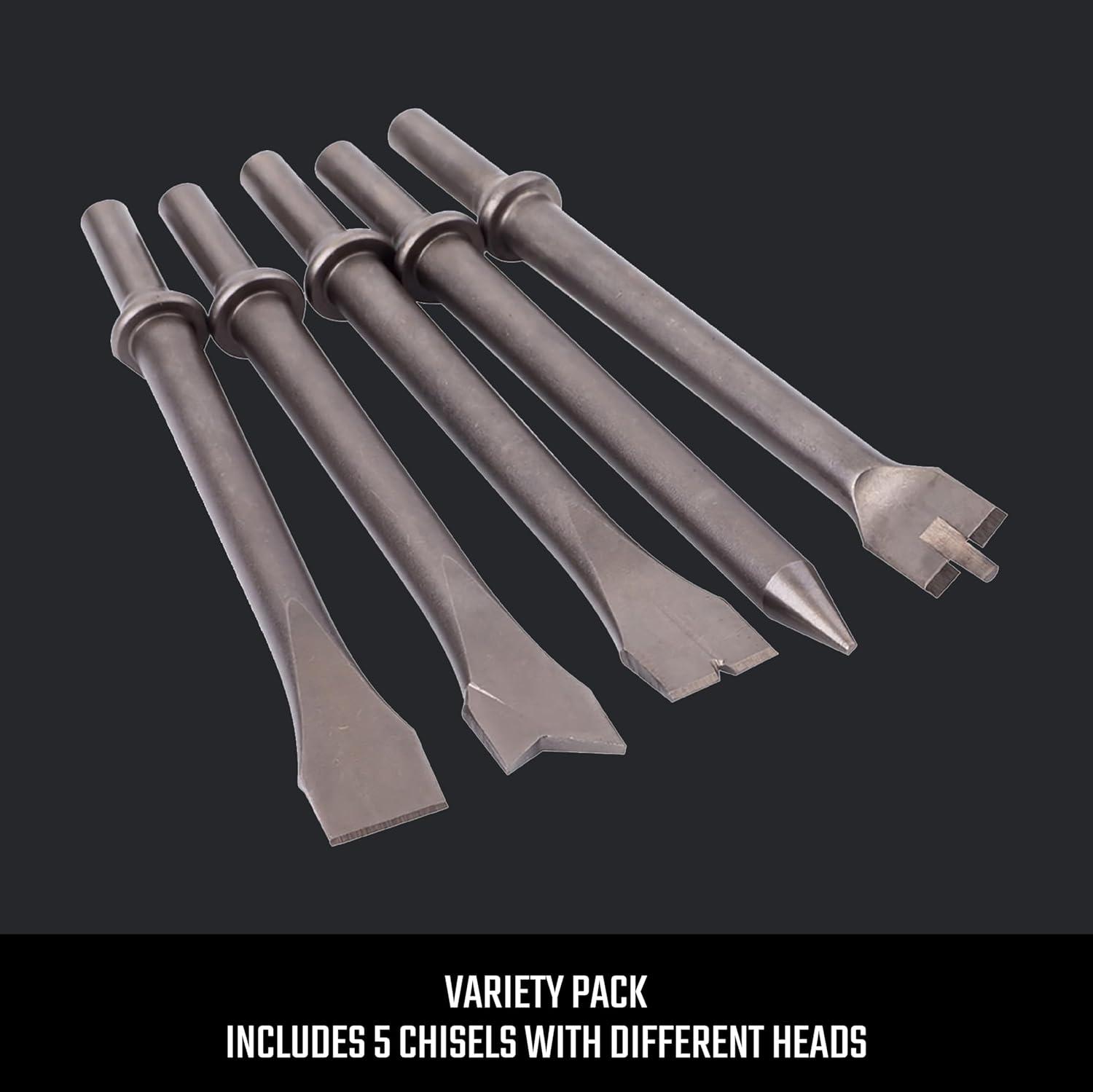 CRAFTSMAN 5-Piece Air Chisel Set, 0.401-in Shank, Hardened Alloy Steel, Variety of Chisel Heads for Multiple Applications