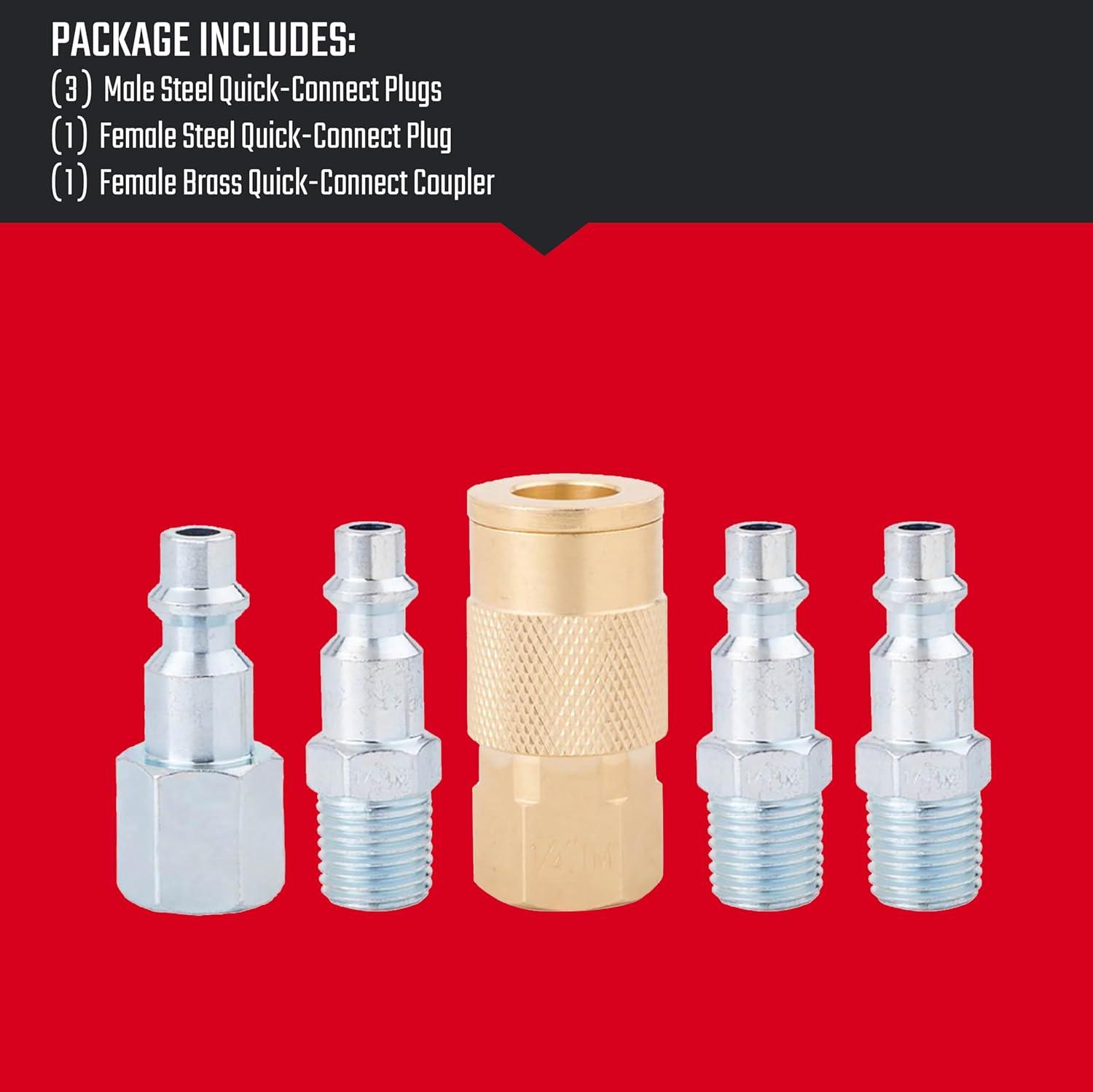 CRAFTSMAN 5-pc NPT Coupler/Plug Kit, Industrial Quick Connect, Steel and Brass, 1/4-in NPT Threads