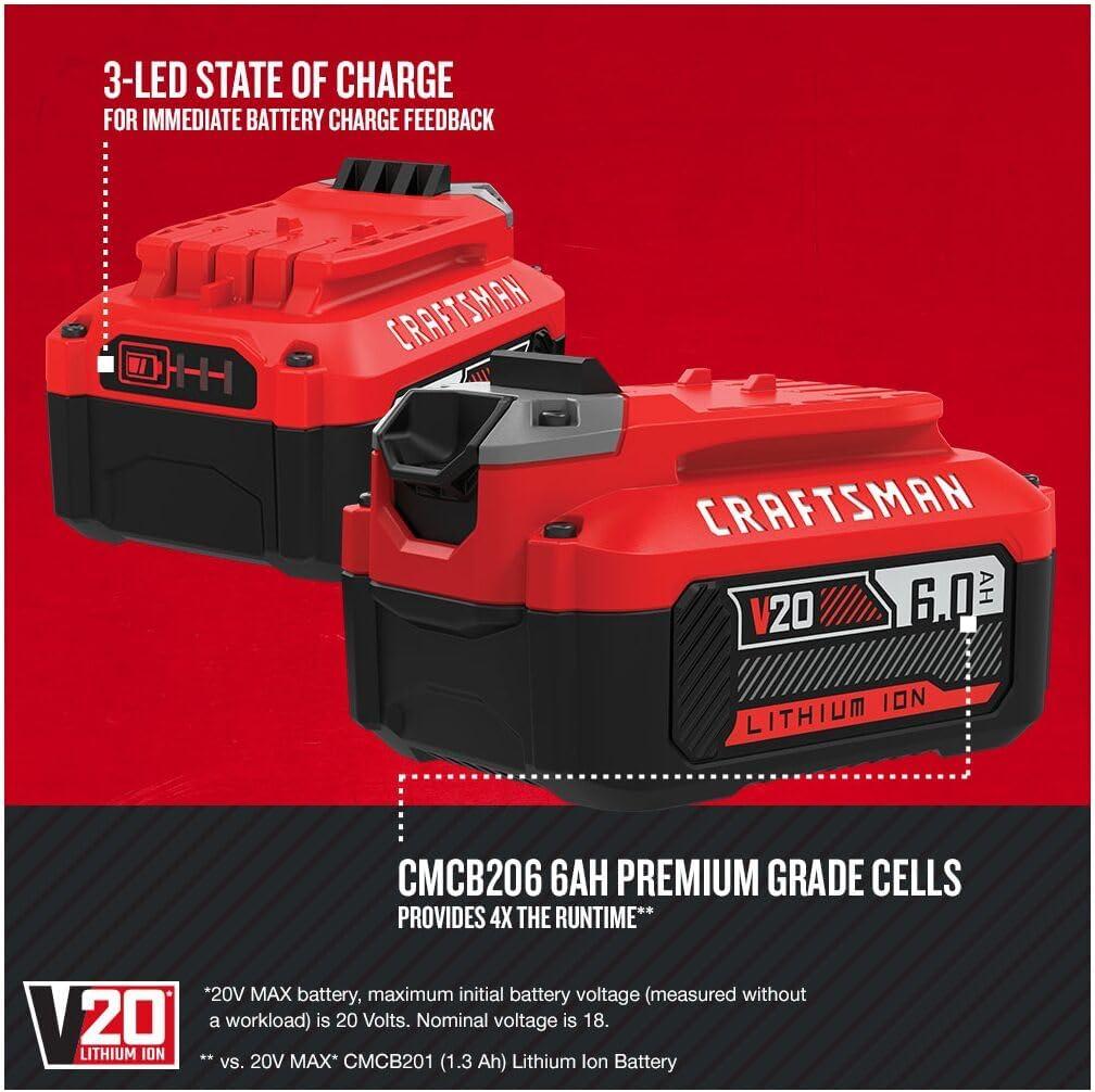 CRAFTSMAN V20 6Ah Lithium Ion Power Tool Battery (CMCB206)