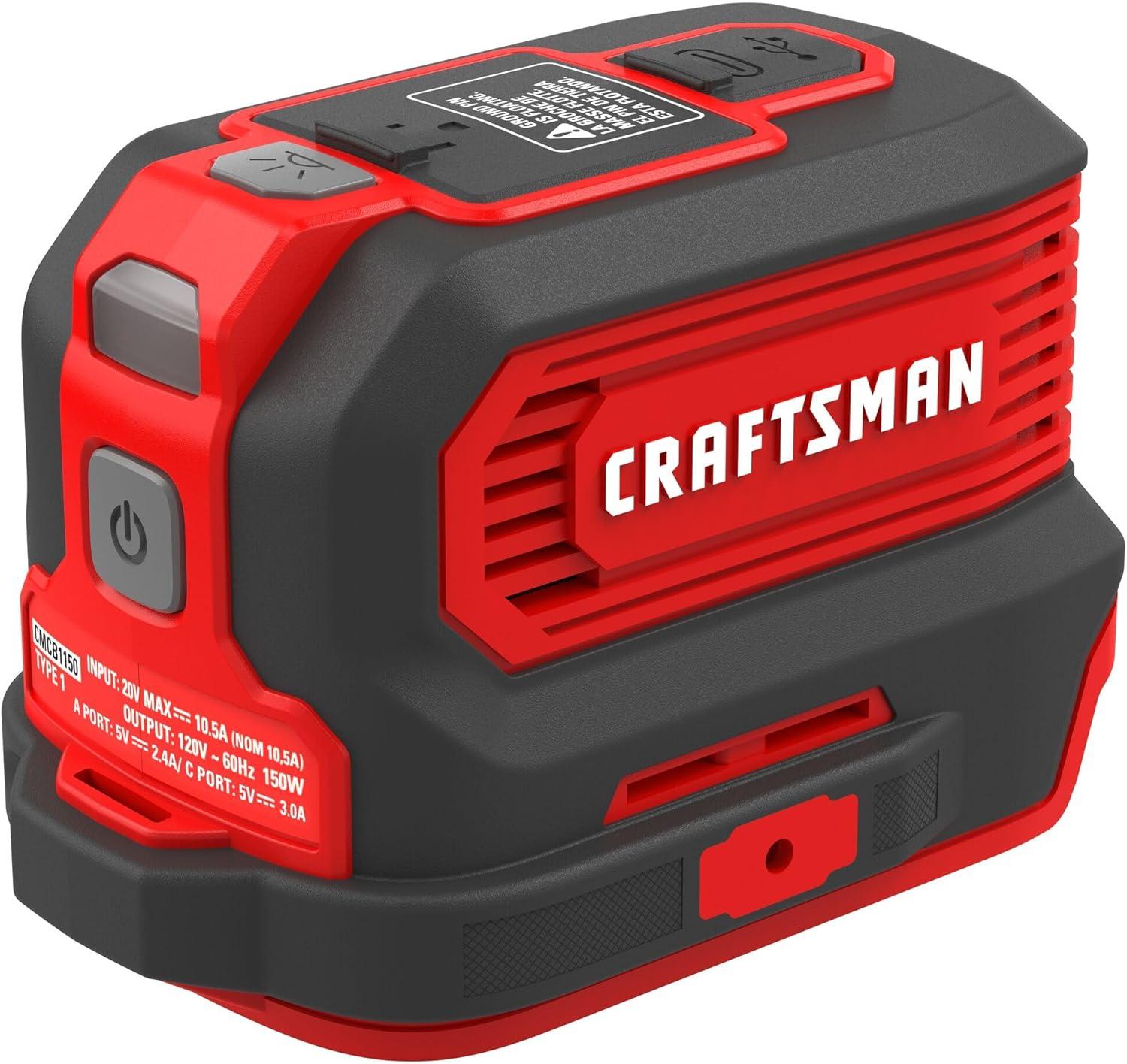 CRAFTSMAN V20 Charger, Power Inverter, Charging Ports for Type-C, Type-A, and AC, 150 Watts, Bare Tool Only (CMCB1150B)