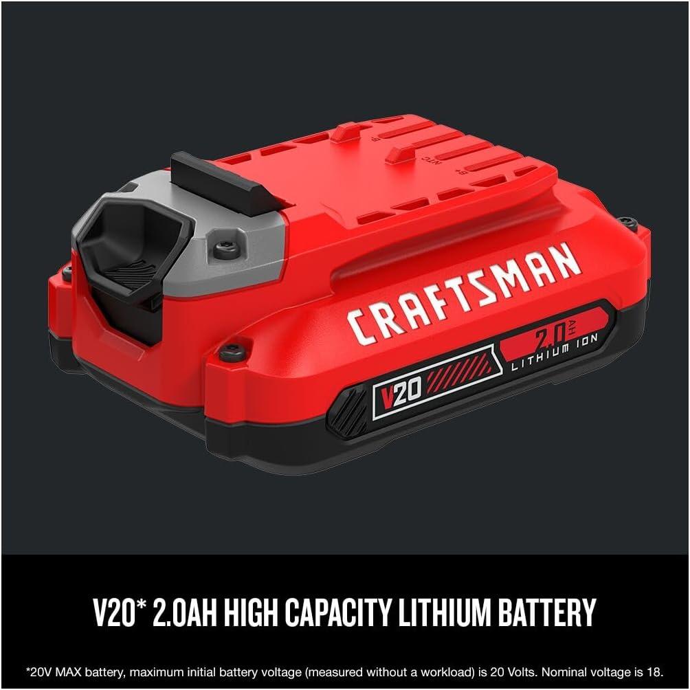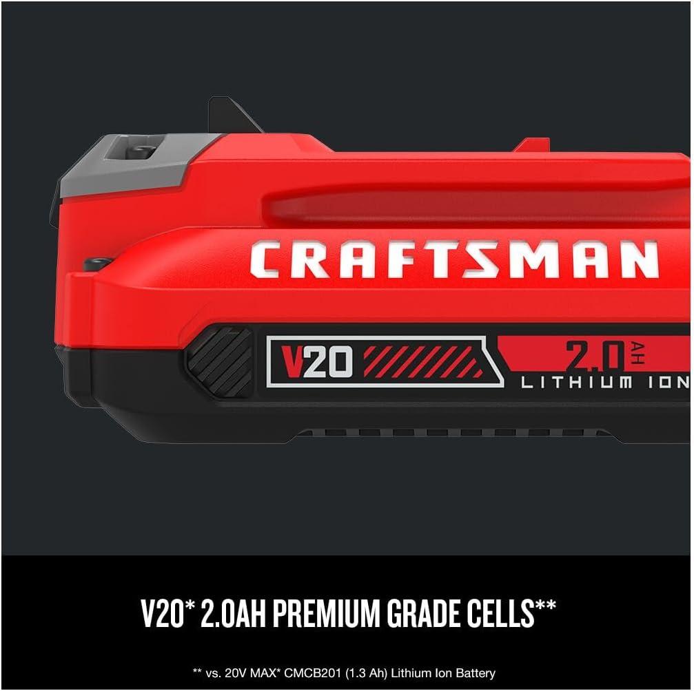 CRAFTSMAN V20 Lithium Ion Battery, 2.0-Amp Hour, 2 Pack (CMCB202-2)((1) 2.0AH Battery)