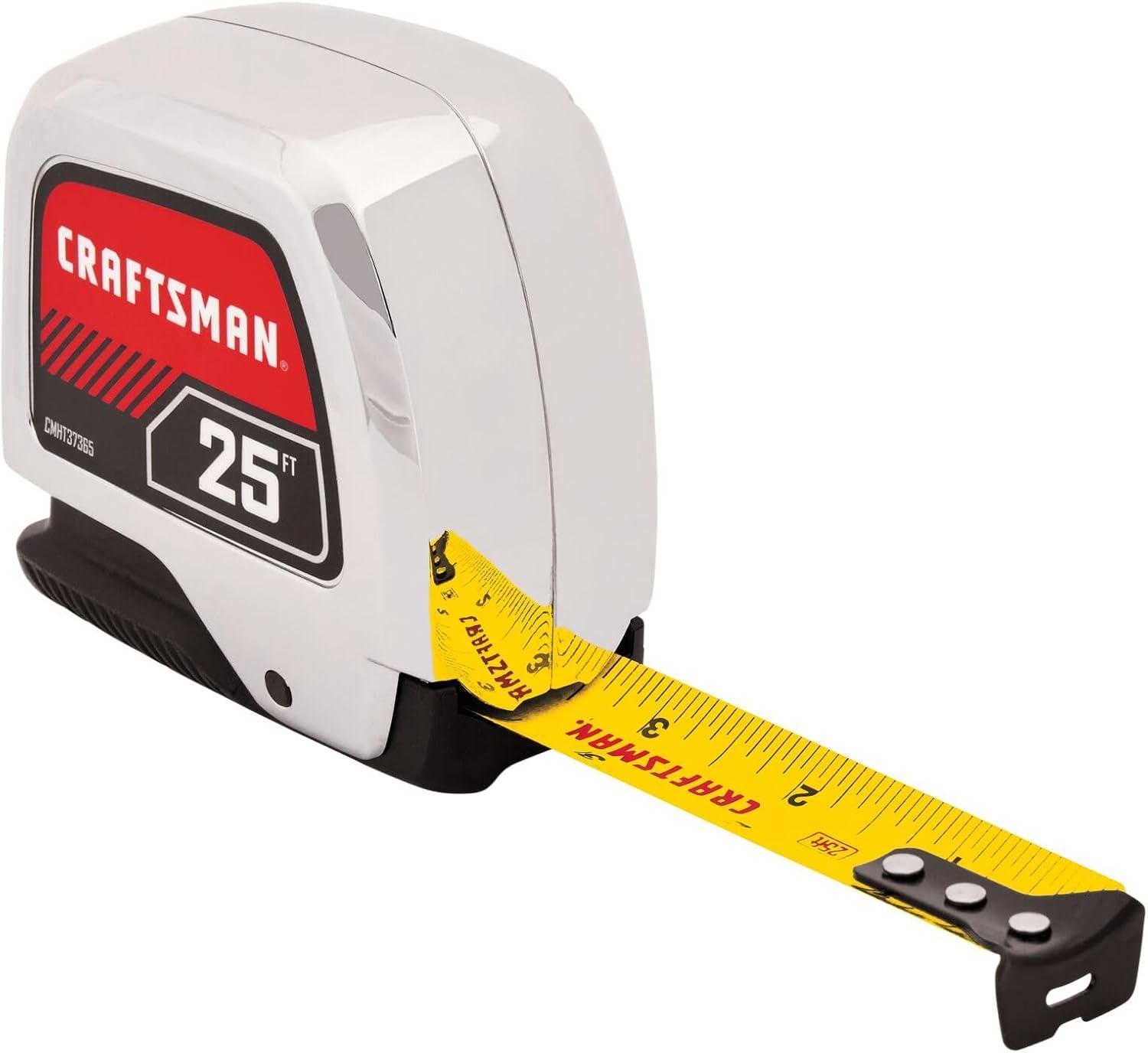 • CRAFTSMAN Tape Measure, 25 ft, Retraction Control and Self-Lock, Solid Chrome Finish, Rubber Grip (CMHT37325S)(7.6 m)