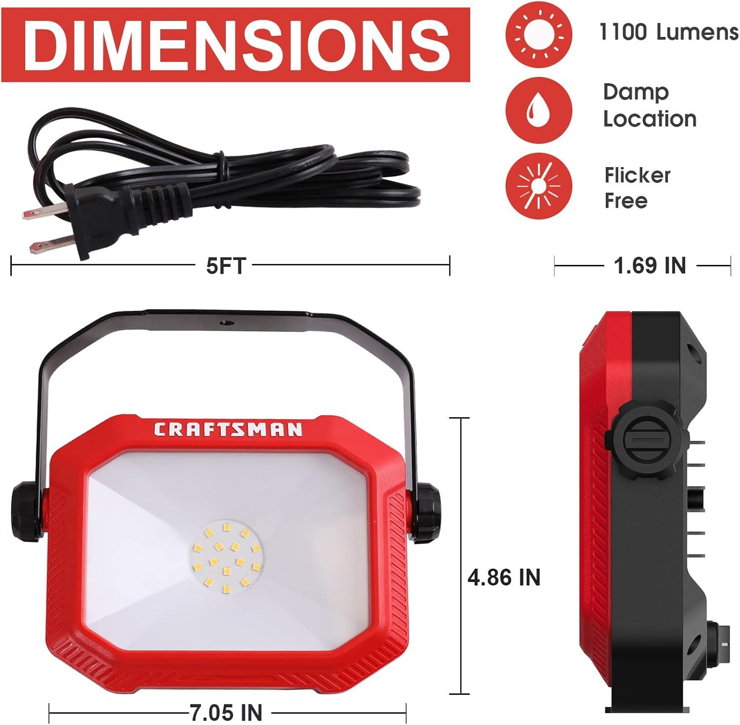 CRAFTSMAN 1100 Lumens 4000K LED Tiltable Portable Work Light in Red with 2-in-1 Adjustable Metal Rotating Stand and Handle, Impact-Resistant Glass Lens, 5FT Power Cord, ETL, Perfect for Job Site(1100LM)