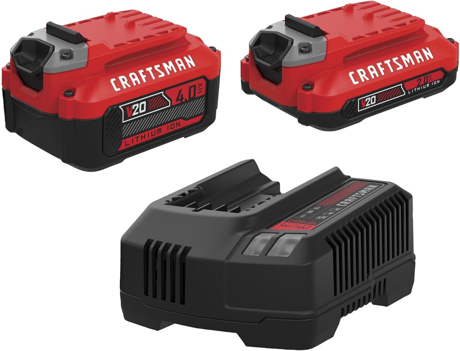 CRAFTSMAN 20V Battery and Charger Set, 2Ah and 4Ah Lithium Ion Batteries and Charger Kit (CMCB204-CKVA)