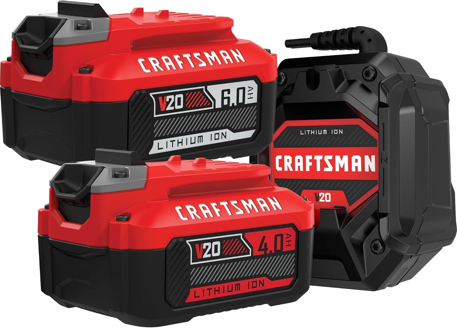 CRAFTSMAN 20V Battery and Charger Set, 4Ah and 6Ah Lithium Ion Batteries and 1 Charger, Cordless Tool Battery Packs (CMCB2046-CK)