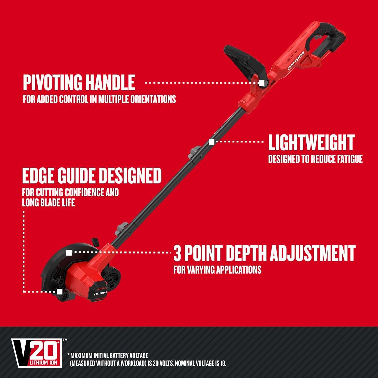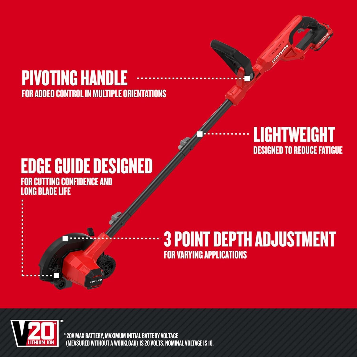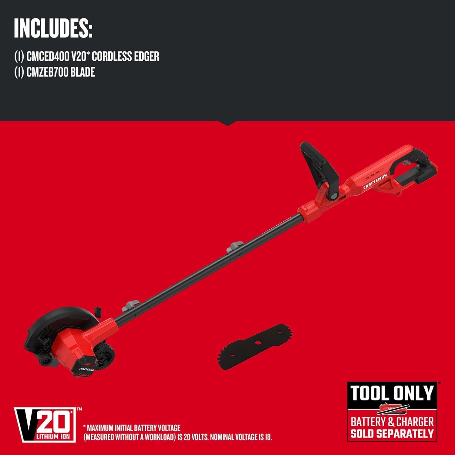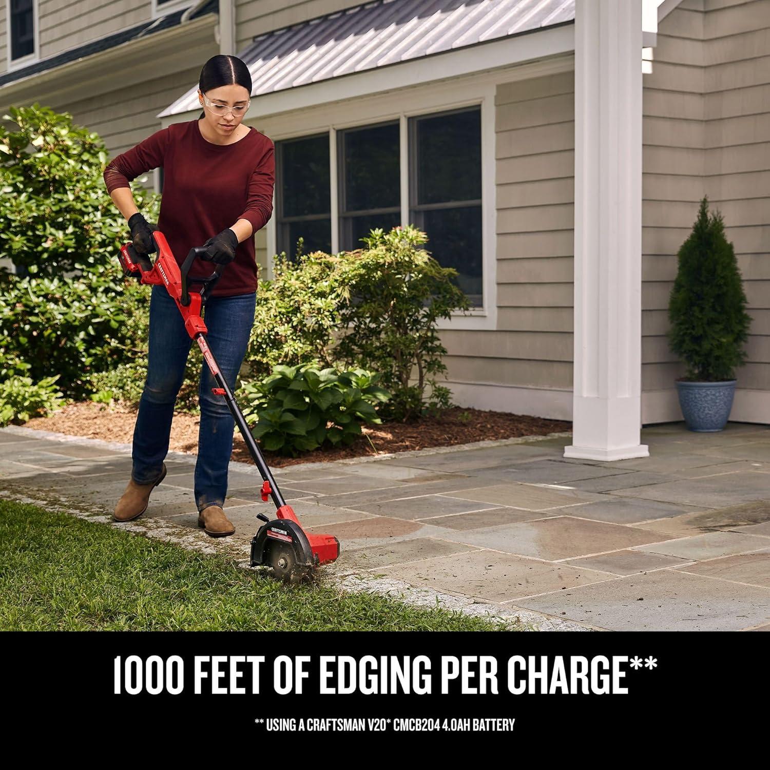 CRAFTSMAN Cordless Edger Lawn Tool, 20V MAX Battery, Charger and Blade Included, Lightweight Lawn Edger, 7.5 in Cutting Width, 1000 Ft of Edging per Charge (CMCED400D1)