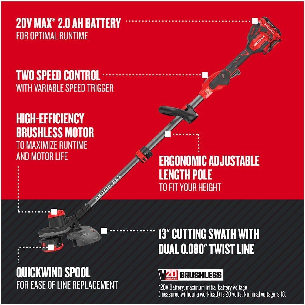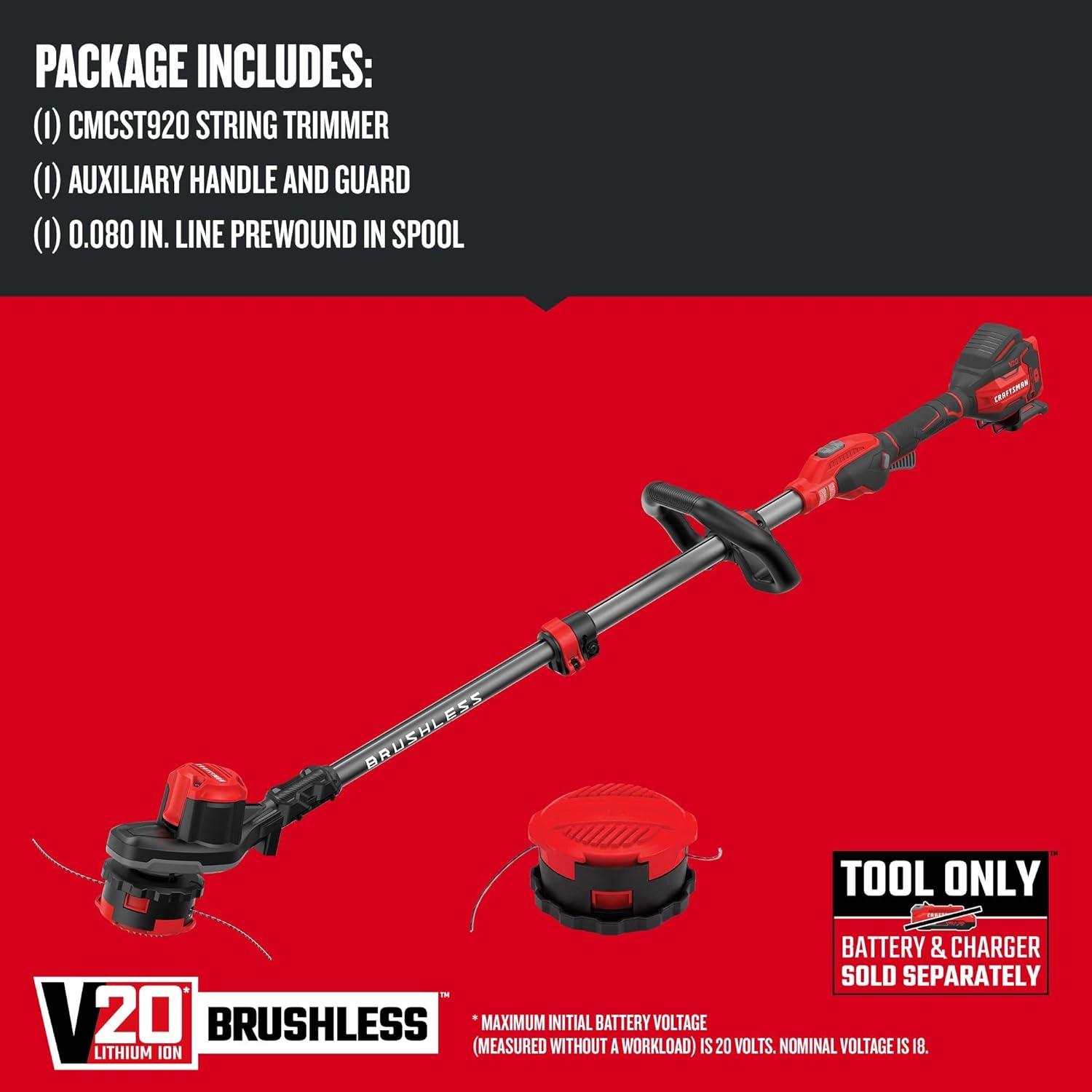 CRAFTSMAN V20 RP Cordless String Trimmer, Brushless, 5.0Ah Battery & Charger Included (CMCST930P1)(String Trimmer)