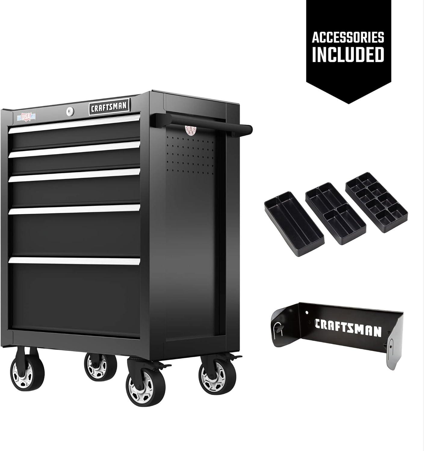 CRAFTSMAN Rolling Tool Chest, 26-inch, 5-Drawer, Workshop Tool Storage with Wheels (CMST32752RB)(New (Black))