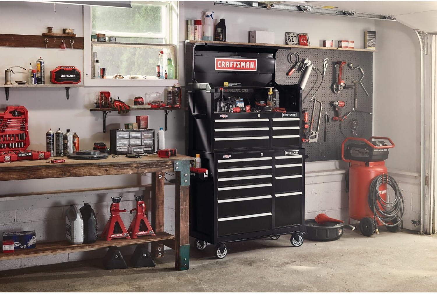 CRAFTSMAN S2000 52″ 8-Drawer Tool Storage Chest with Light and Divider, Red (CMST35282RB)(New (Black))