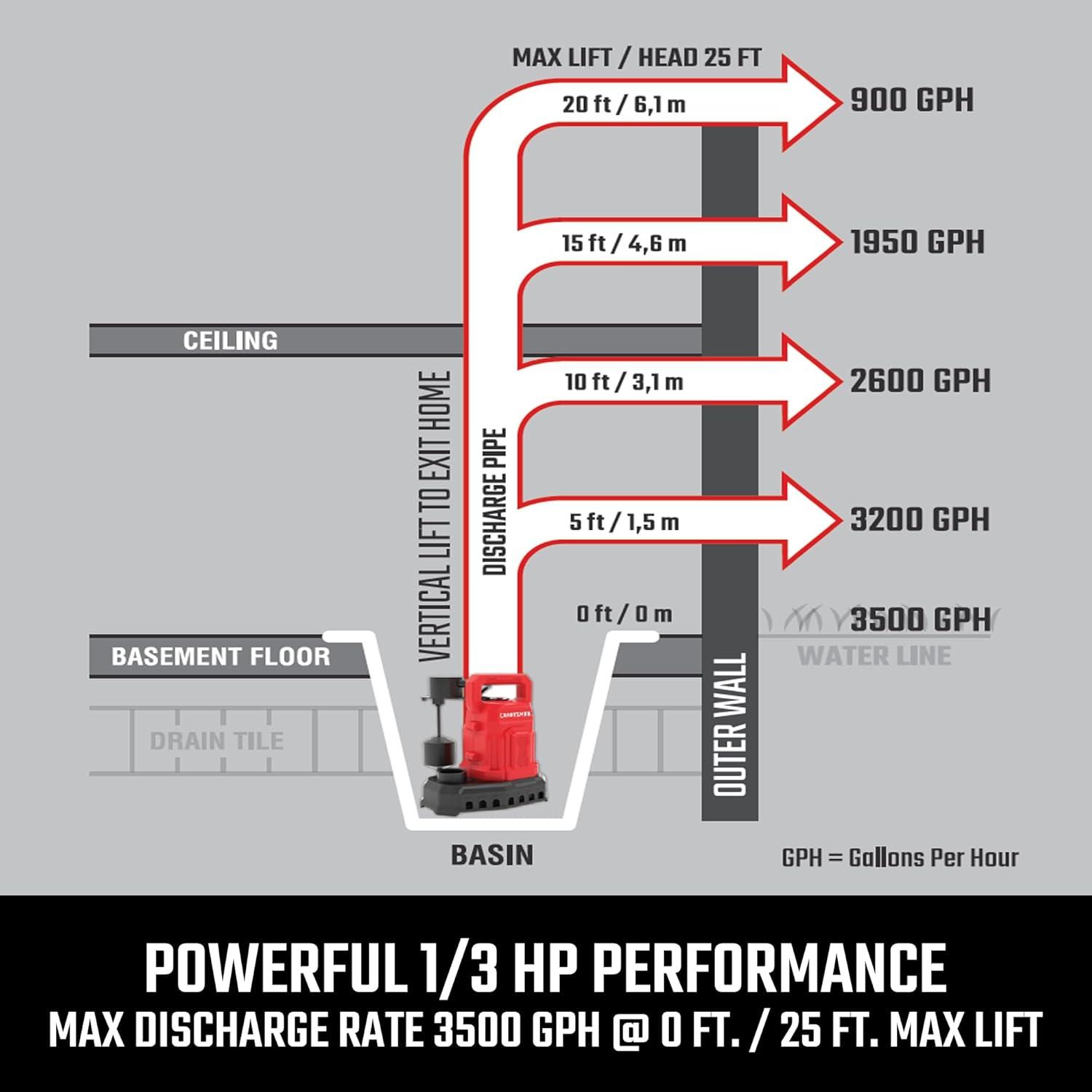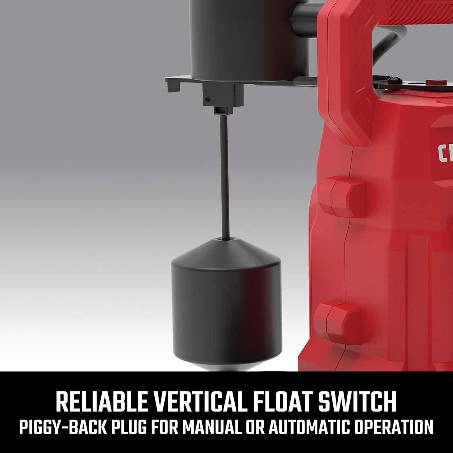 CRAFTSMAN 1/2 HP Auto Thermoplastic Submersible Sump Pump (Vert), Pumps up to 4000 GPH(1/3 HP)