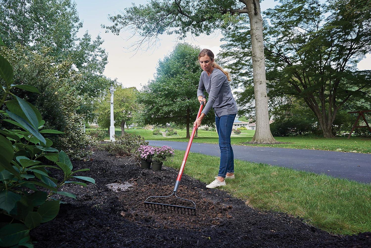 BOW RAKE: Rake features level bow with 16 welded steel tines to spread materials evenly