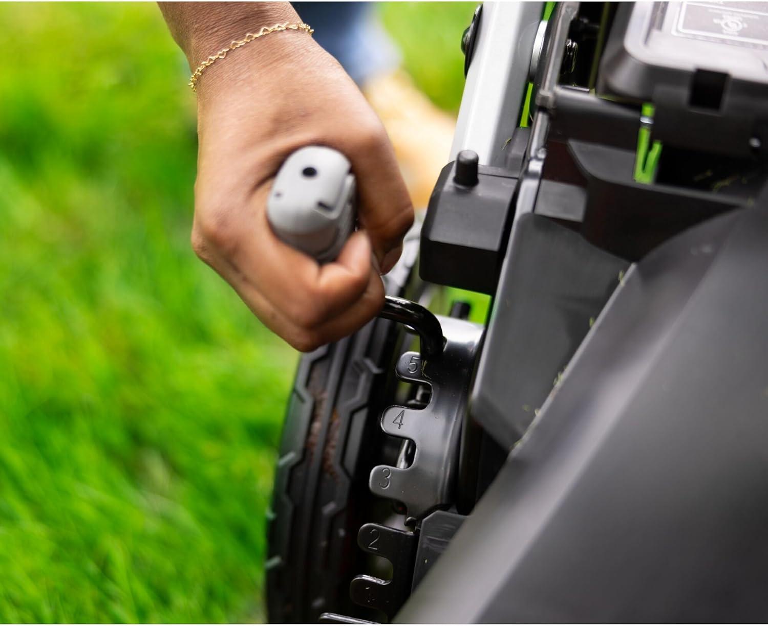 Easy transport & storage – use the one-touch folding handle to quickly store the mower upright–takes 79% less space in vertical storage vs in operation**.