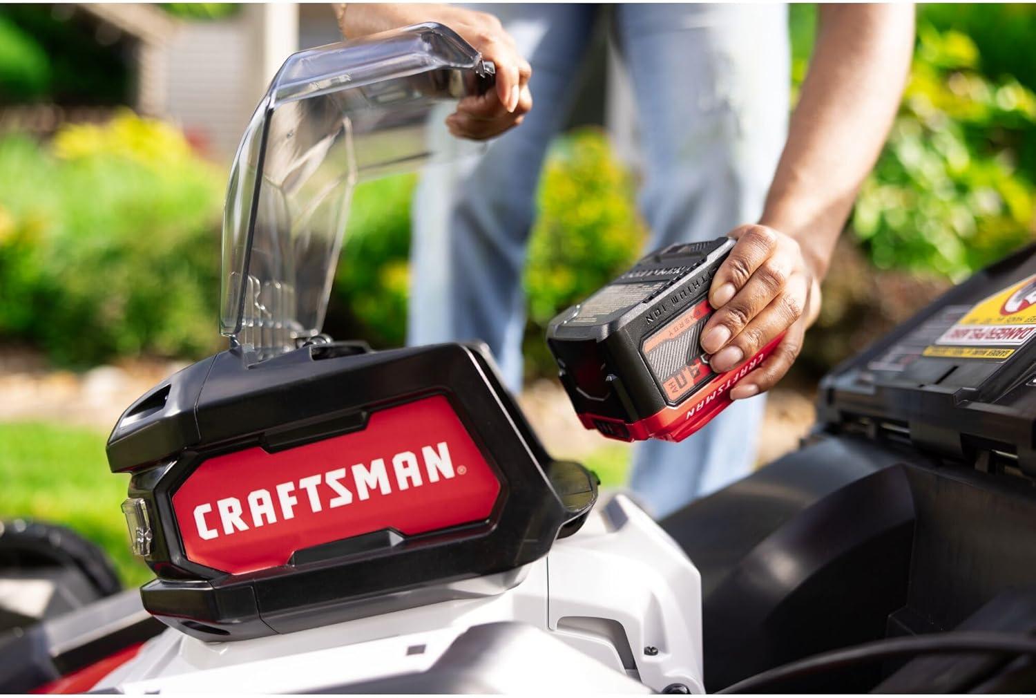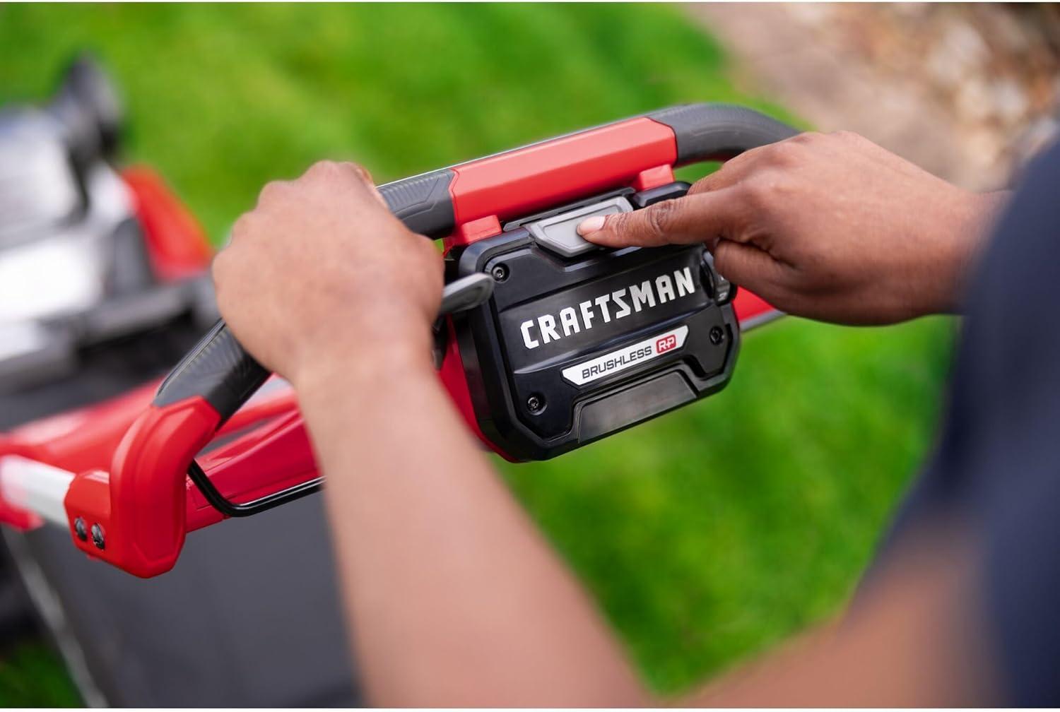 CRAFTSMAN 2X V20 BRUSHLESS RP 21″ Rear Wheel Driver Mower, Self-Propelled, (2) 9.0Ah Batteries and (2) Chargers Included (CMCMWSP320X2)