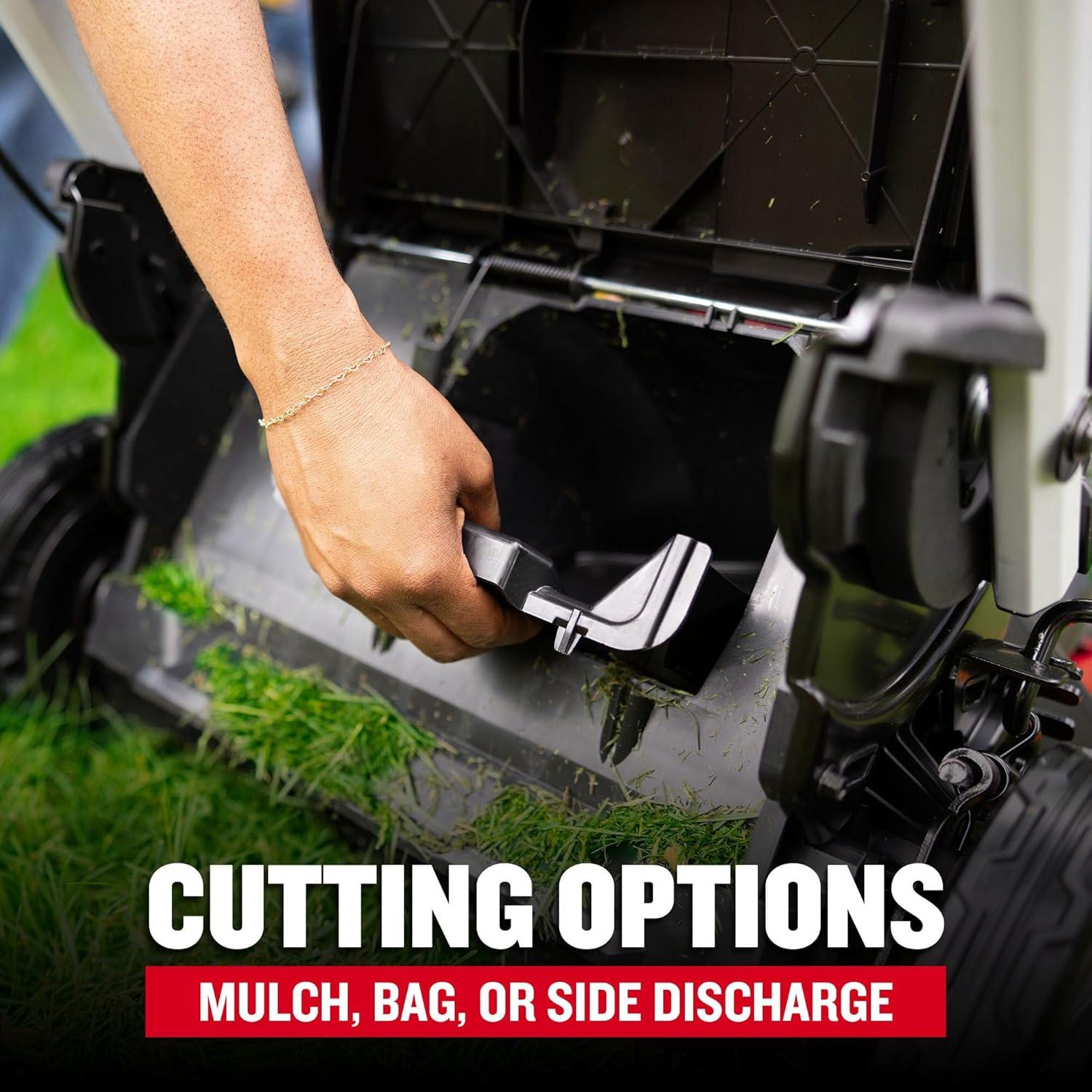 Cutting options – the 3-in-1 steel deck allows you to mulch, bag, or side discharge clippings.