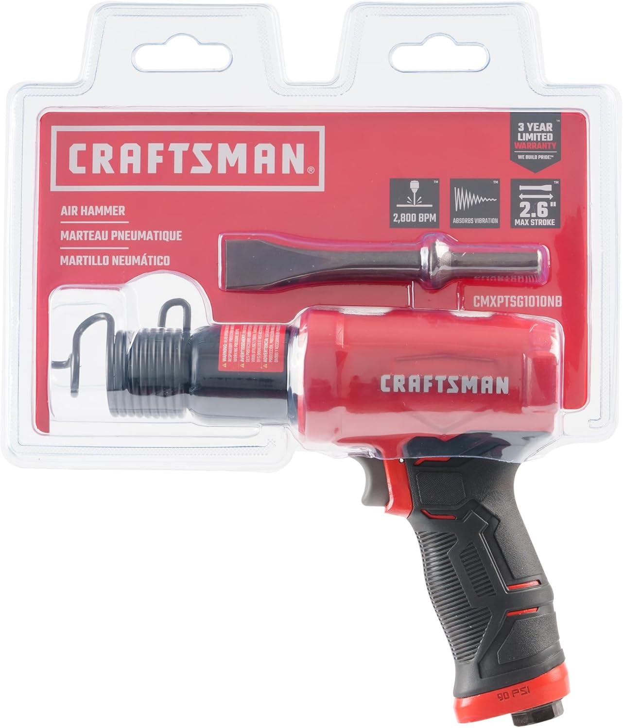 CRAFTSMAN Air Hammer, Medium Stroke, 2,800 BPM, Anti-Slip Handle, 4.4 SCFM at 90 PSI, Flat-Blade Chisel Included((Pack of 1))