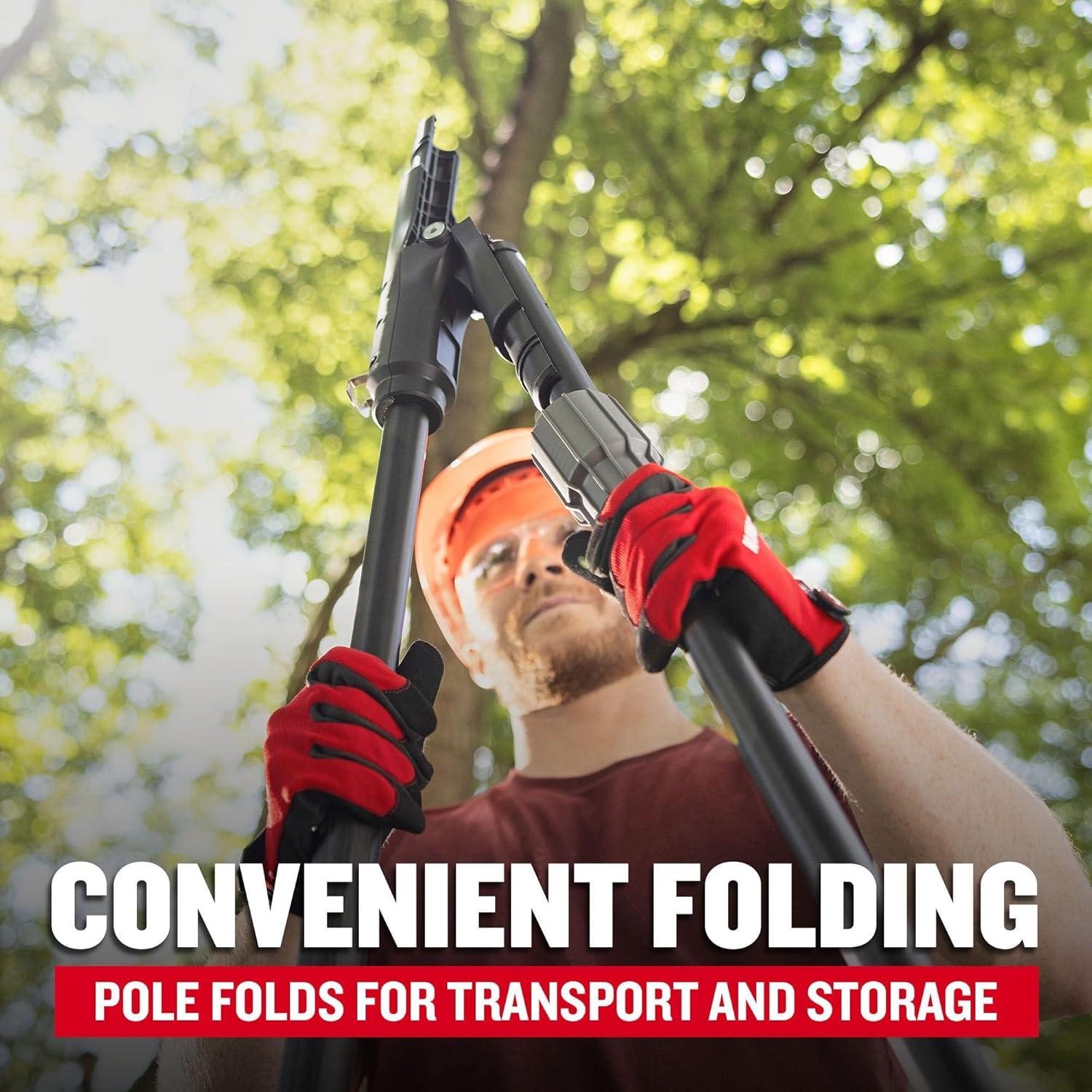 Extended reach – 10 ft. Pole folds for convenient transport and storage.
