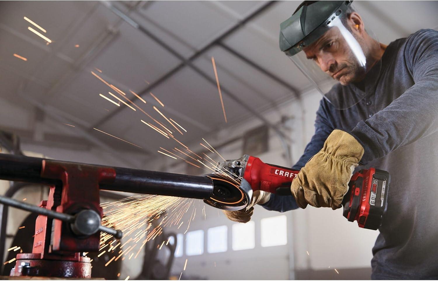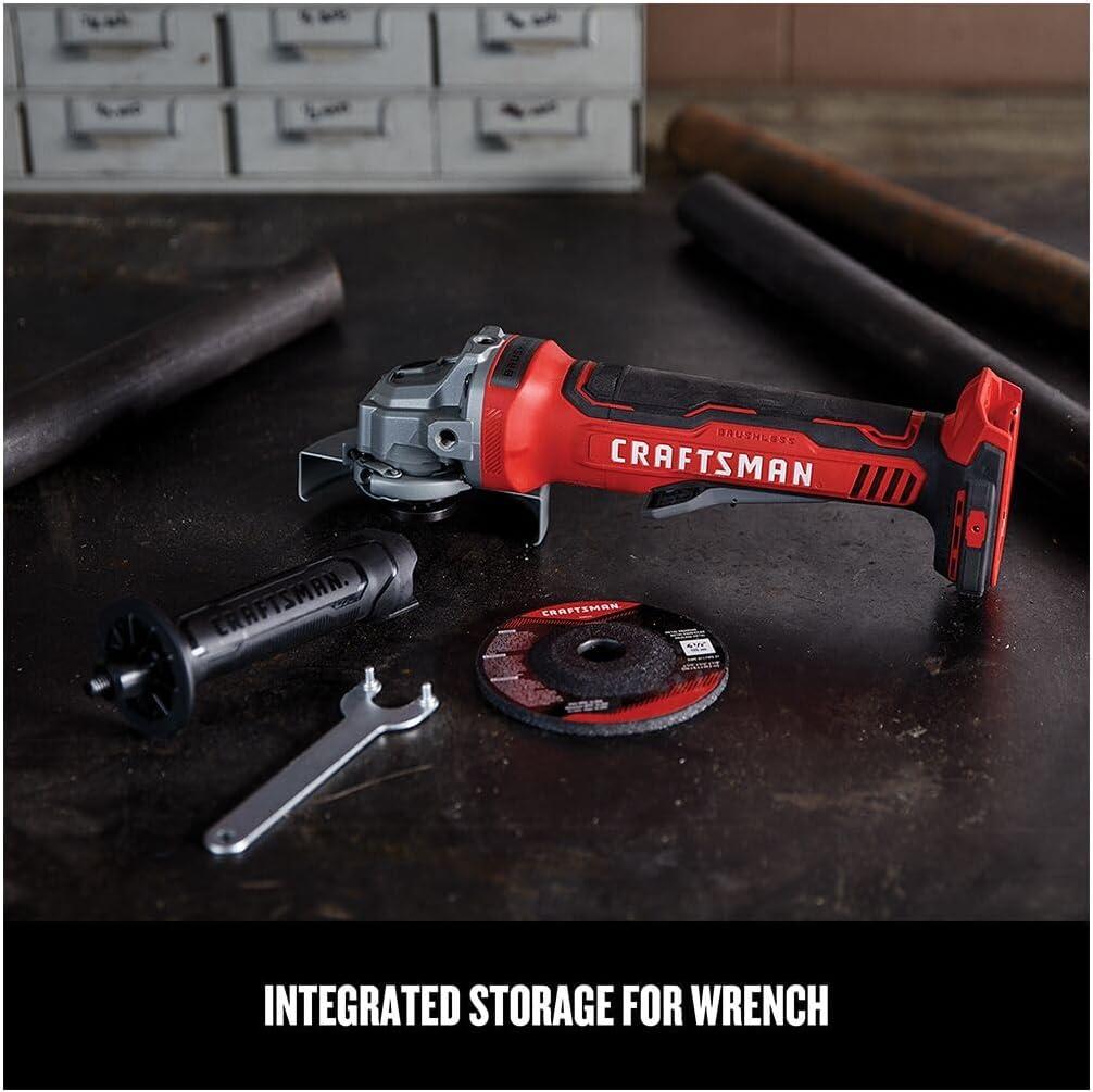 CRAFTSMAN V20 Cordless Angle Grinder Tool Kit, 4-1/2 inch, Battery and Charger Included (CMCG400M1)(Brushless Grinder (Tool Only))