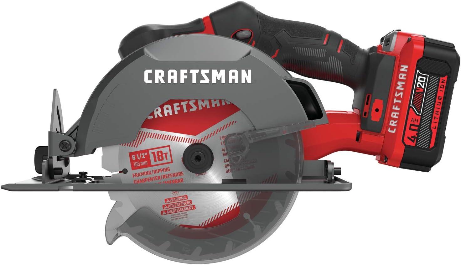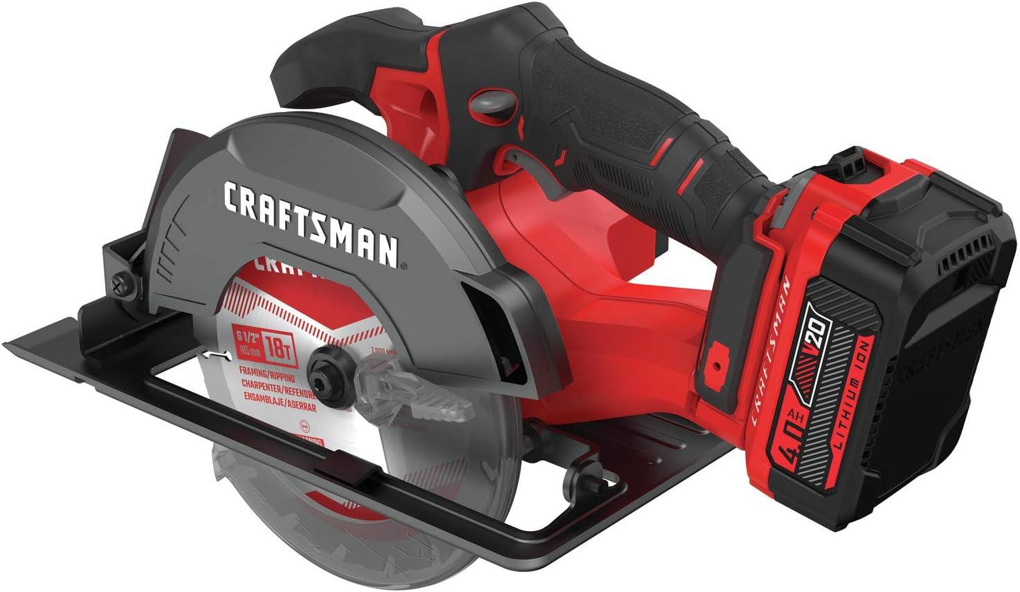 CRAFTSMAN V20 Cordless Circular Saw Kit, 6-1/2 inch, Battery and Charger Included (CMCS500M1)(Circular Saw Kit Only)