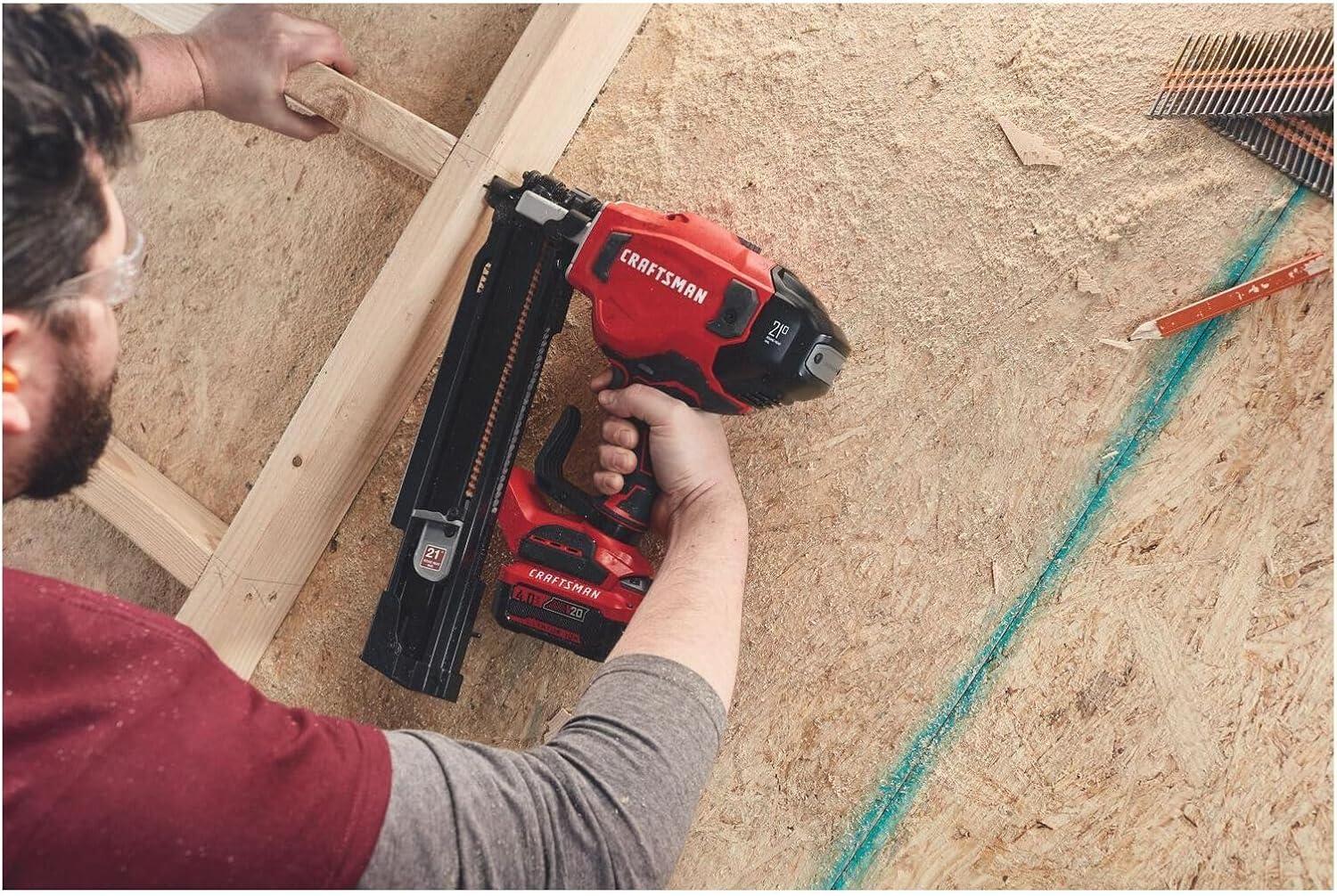 CRAFTSMAN V20 Cordless Framing Nailer, Nail Gun, 21 Degree, up to 3-1/4 inch Nails, Bare Tool Only (CMCN621PLB)