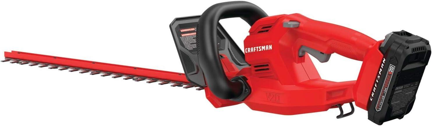 CRAFTSMAN V20 Cordless Hedge Trimmer with Battery and Charger Included, 20 in. Rechargeable Bush Trimmer Cordless, Lightweight (CMCHT810C1)(w/ Cordless Starter Kit)